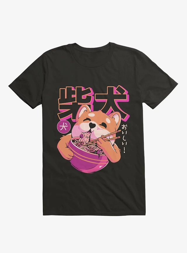 Shiba Eating Noodles Charcoal Grey T-Shirt