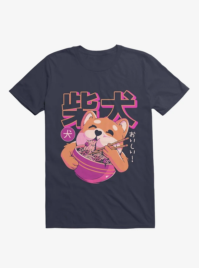 Shiba Eating Noodles Navy Blue T-Shirt