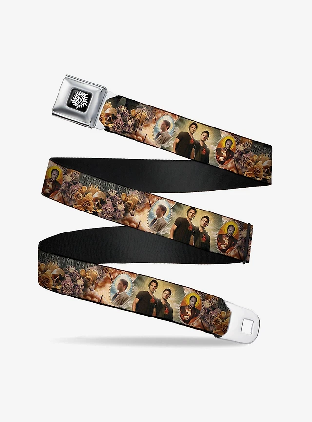 Supernatural Saintly Icons Skull Roses Seatbelt Belt