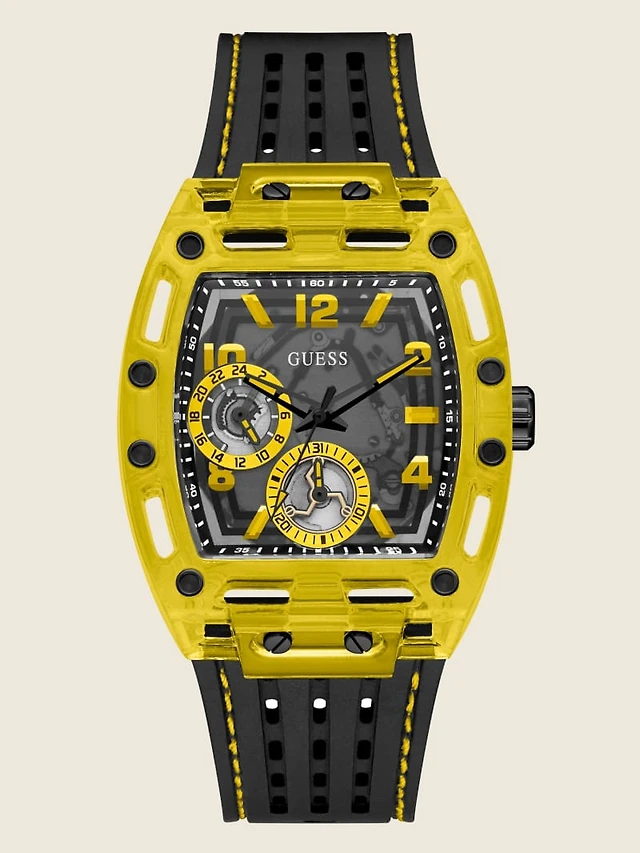 Yellow Exposed Dial Multifunction Watch