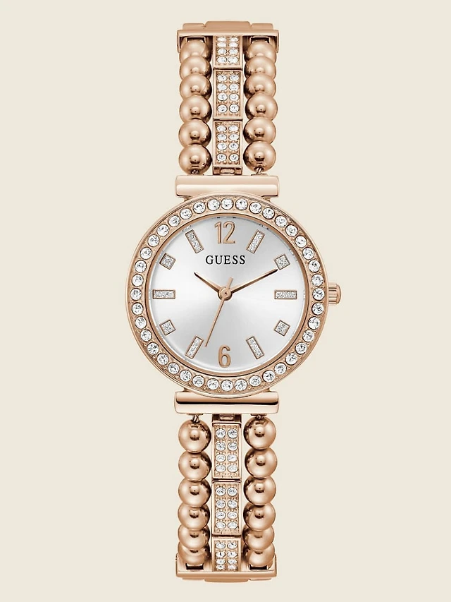 Rose Gold-Tone and Black Silicone Multifunction Watch