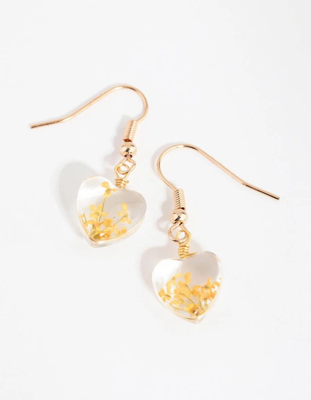 Yellow Heart Clear Bead Drop Earrings