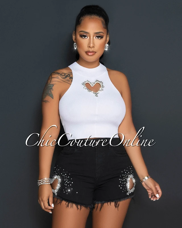 Rose Gold Pave Heart Necklace & Huggie Earrings