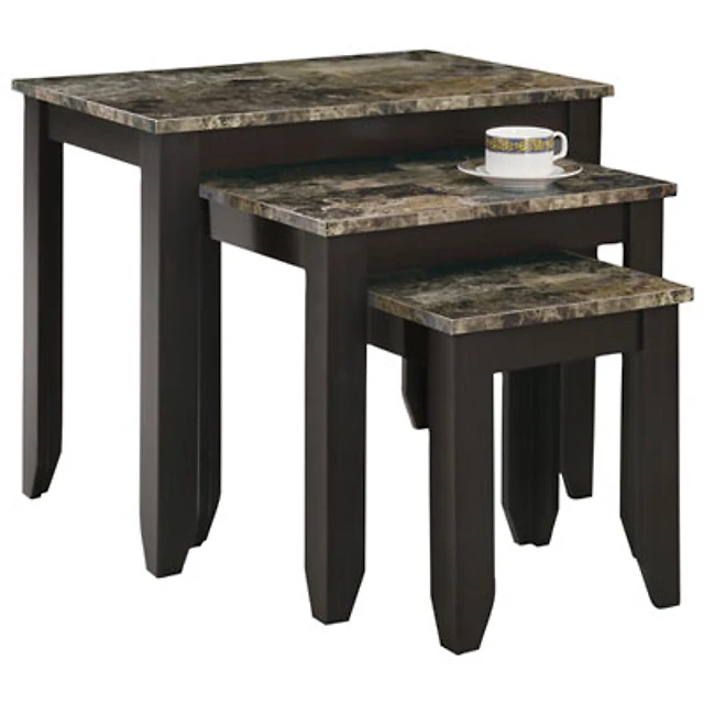 Monarch Contemporary 3-Piece Coffee Table & End Tables Set - Grey Taupe