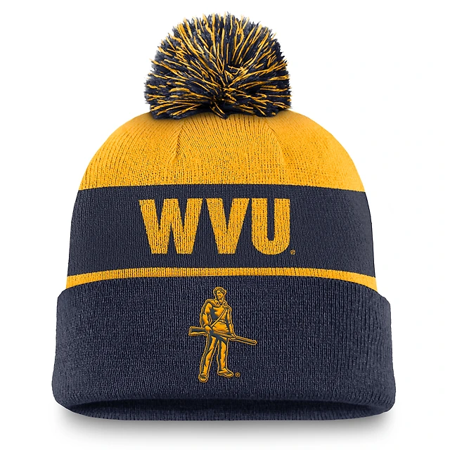 Men's Nike Gold/Navy West Virginia Mountaineers Primetime Peak Cuffed Knit Hat with Pom