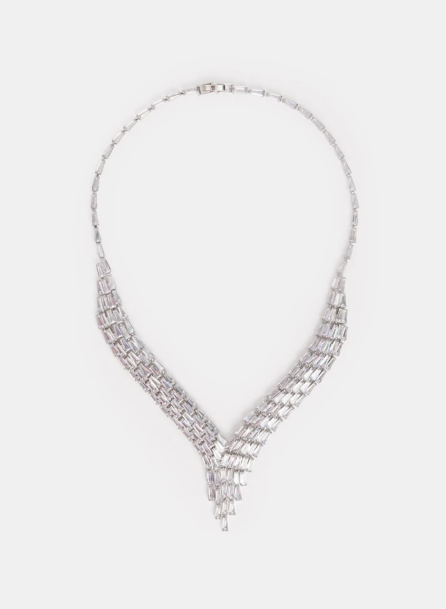 Silver Cubic Zirconia Multi-Row Pearl Necklace