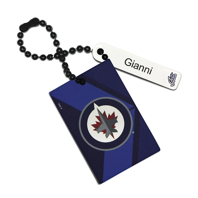 White New York Rangers Personalized Leather Rectangle Bag Tag
