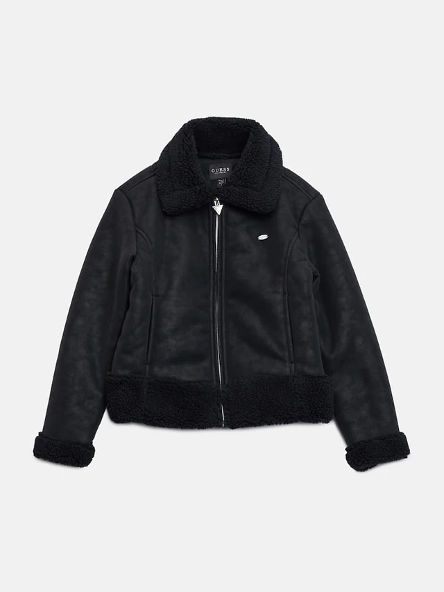 Ardene Faux Leather Bomber Jacket in Black | Size | Faux Leather/Polyester