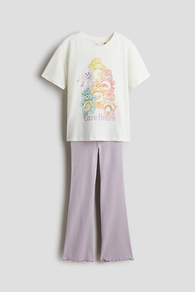 Kids Stitch & Angel Graphic Wide Leg Striped Sweatpant