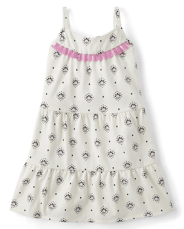 Baby And Toddler Girls Print Tassel Tiered Dress
