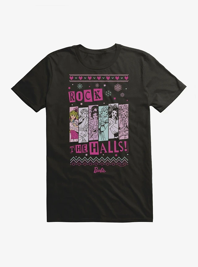 Barbie Rock The Halls Ugly Christmas Pattern Girls T-Shirt