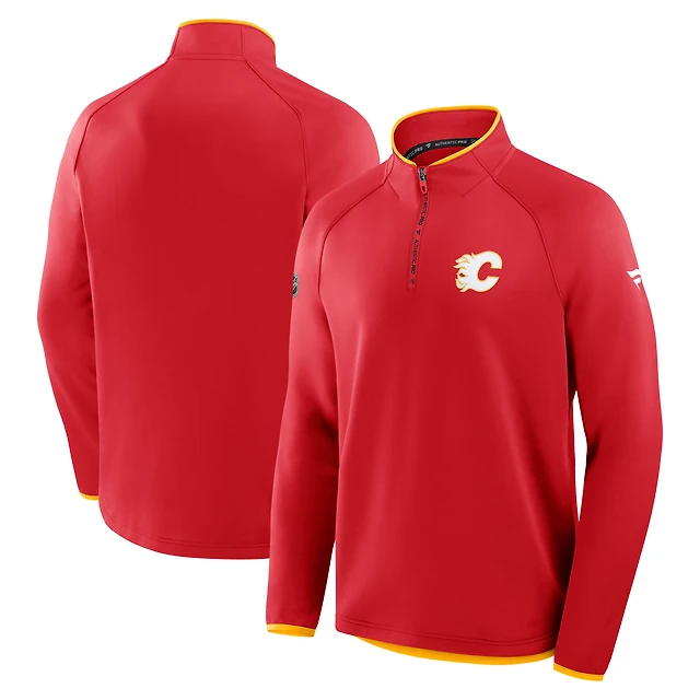 Men's Fanatics Red Calgary Flames Authentic Pro Rink Raglan Quarter-Zip Pullover
