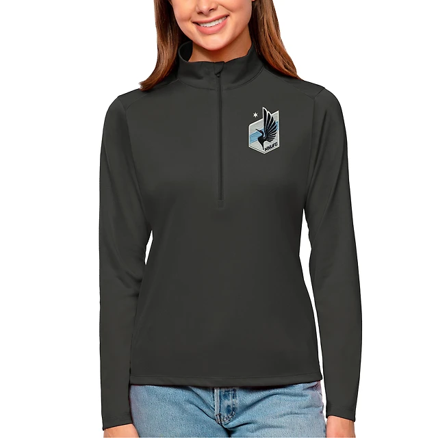 Women's Antigua Charcoal Minnesota United FC Tribute Quarter-Zip Pullover Top
