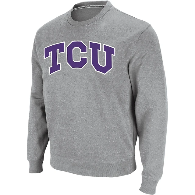 Men's Colosseum Heather Gray TCU Horned Frogs Arch & Logo Crew Neck Sweatshirt