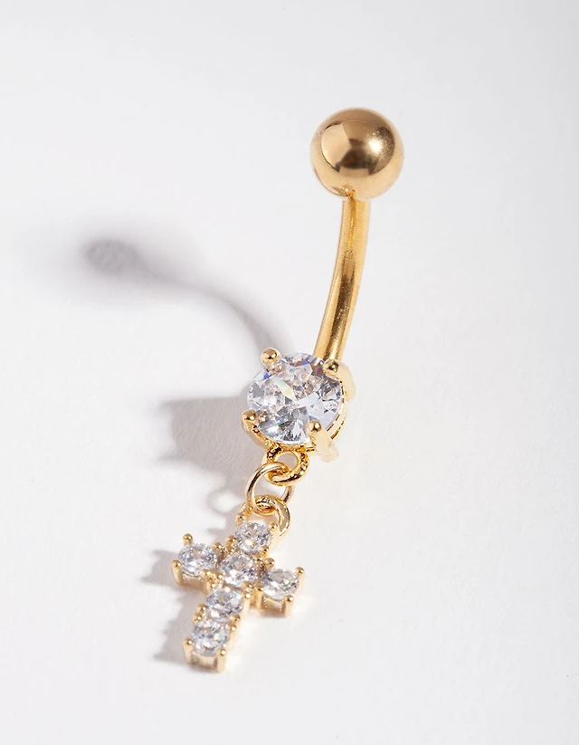 Gold Cubic Zirconia Flower Drop Belly Ring