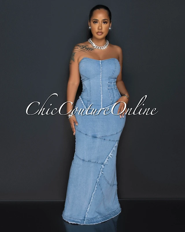 Madeline Auburn Blue Ombre Deep V-Neck Maxi Dress