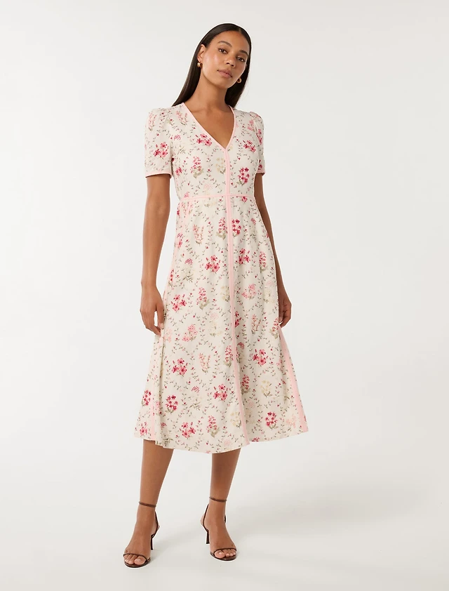 Kelsey Cream Blue Floral Print Button Front Maxi Dress