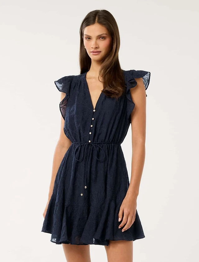 Daria Navy-Blue White Floral Print Wrap Maxi Dress