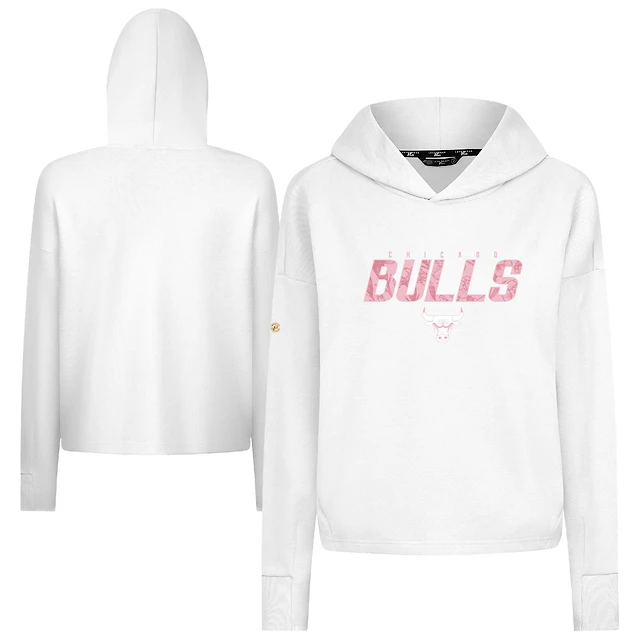 Women's Levelwear White Chicago Bulls Mother's Day Sweet Floral Cropped Tri-Blend Pullover Hoodie