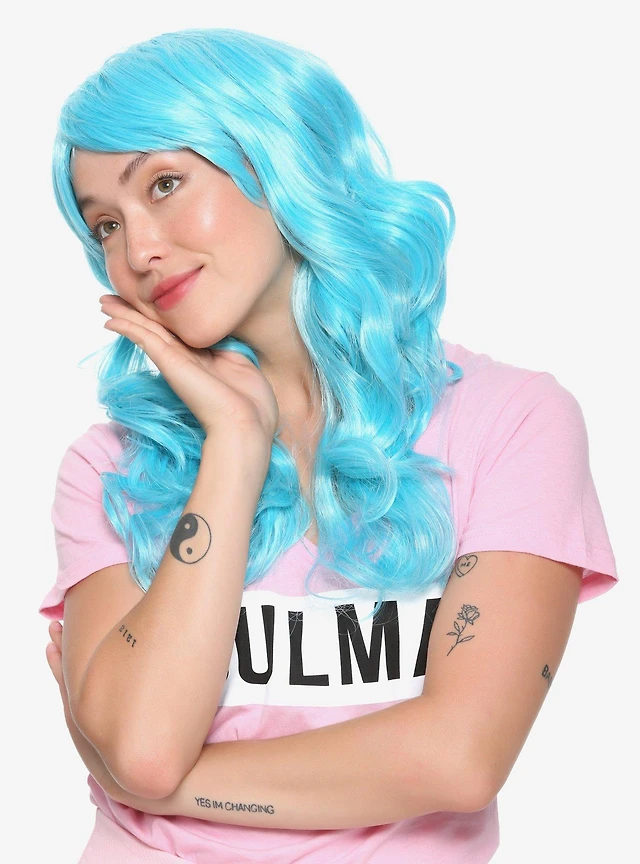 Epic Cosplay Hestia Anime Blue Mix Shoulder Length Curly Wig
