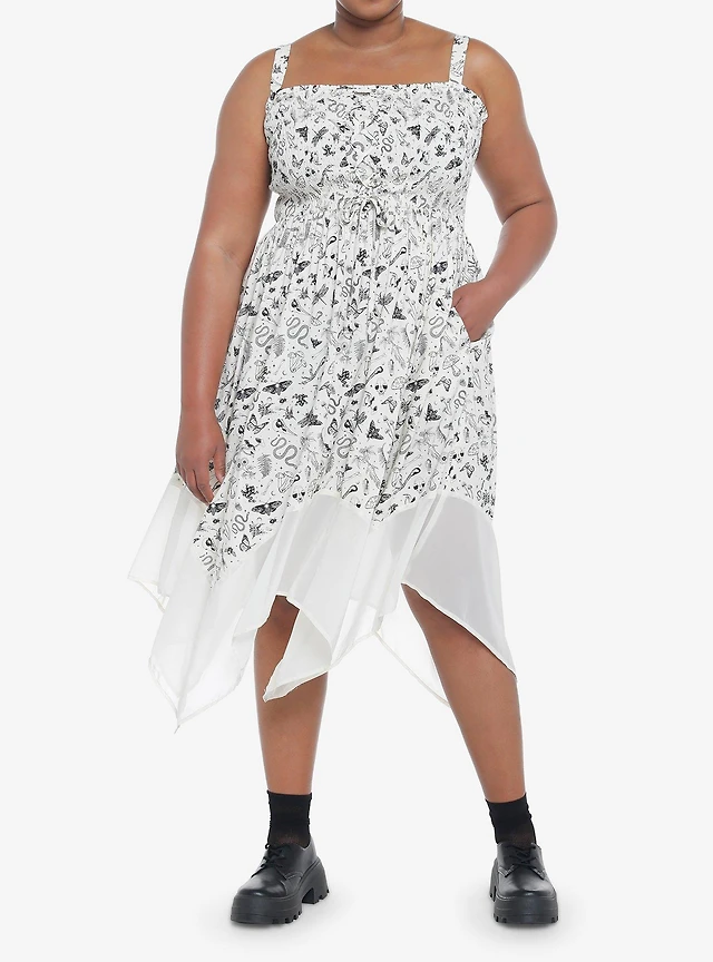 Thorn & Fable Black Hanky Hem Girls Cold Shoulder Dress Plus Size