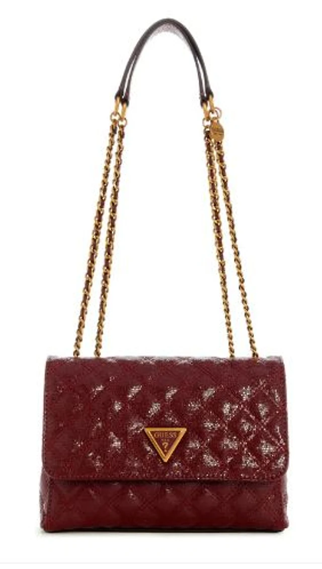 Guess GIULLY 2 COMP CONVERTIBLE FLAP Handbag: BURG