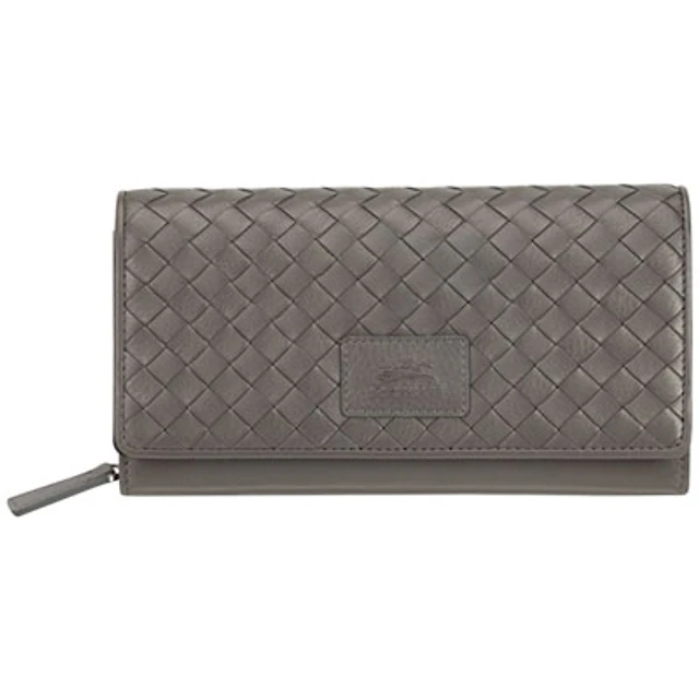 Mancini Basket Weave RFID Genuine Leather Tri-fold Clutch Wing Wallet
