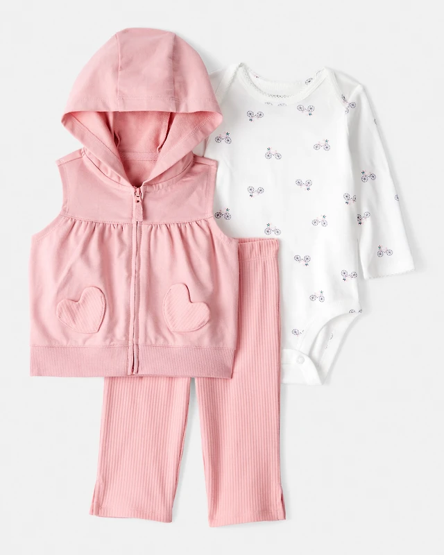 Baby Girl 3-Piece Heart Vest Outfit Set - Pink