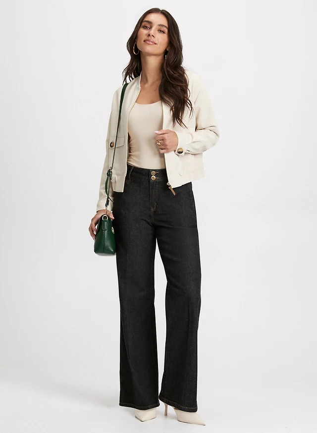 Notched Lapel Jacket, T-Shirt & Contrast Stitch Jeans
