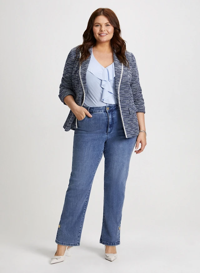 Faux-Suede Jacket & Tencel-Denim Wide-Leg Pants