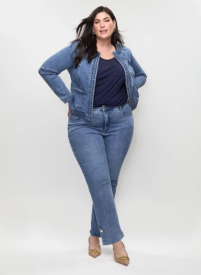Cropped Embossed Button Jacket & Emma Seamed Slim-Leg Pants