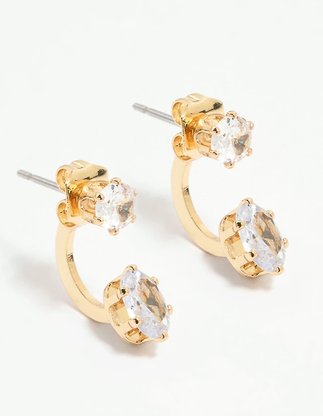 Gold Plated Cubic Zirconia Flower Butterfly Ear Jacket Earrings