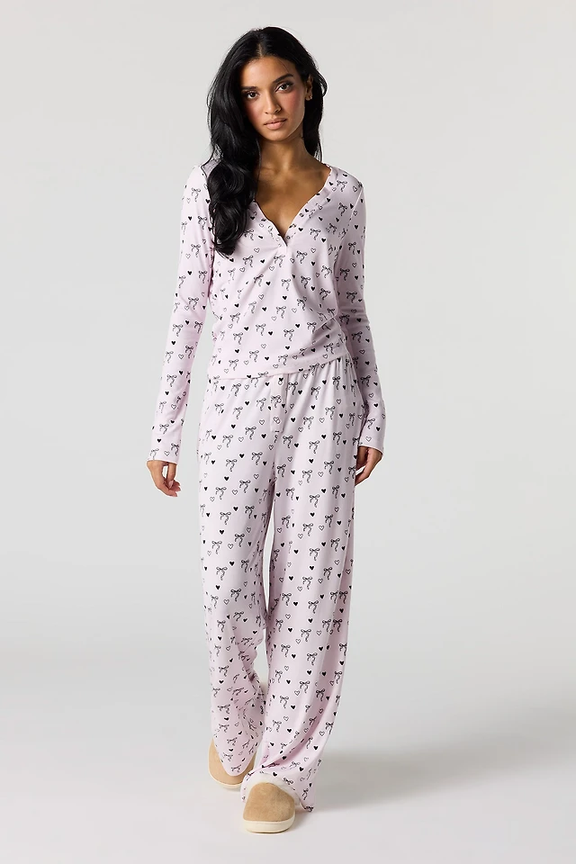 Plaid Bow Screen Print Pj Set