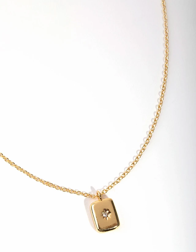 Gold Plated Diamante Rectangle Necklace