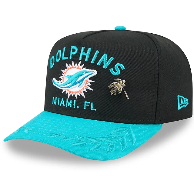 Men's New Era Black/Aqua Miami Dolphins 2025 NFL Draft 9FORTY M-Crown A-Frame Adjustable Hat