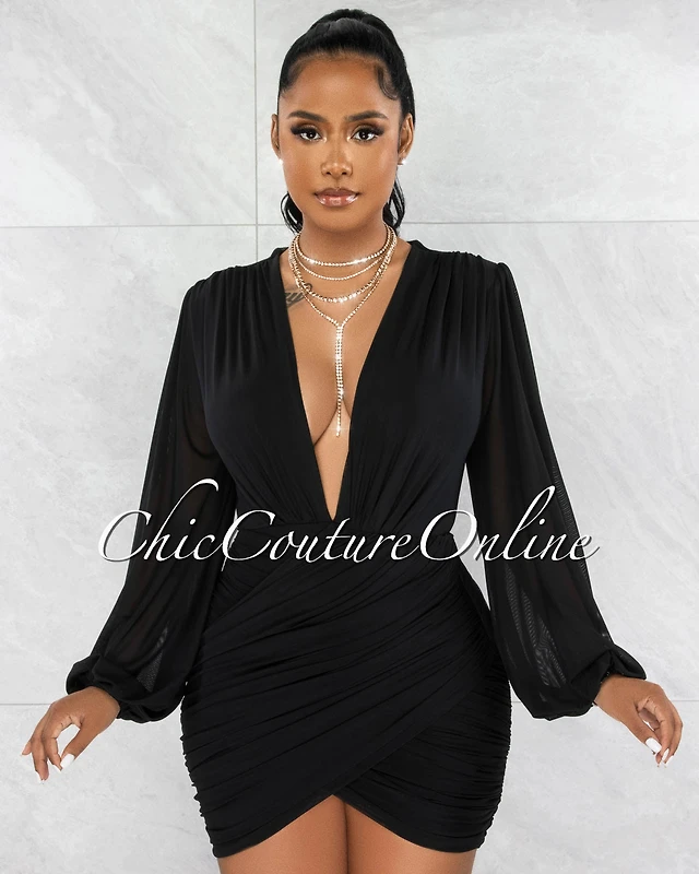 *Bernuda Black Silver Rhinestones Mesh Mini Dress