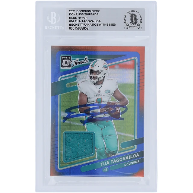 Tua Tagovailoa Miami Dolphins Autographed 2021 Panini Donruss Optic Threads Blue Hyper Relic #TH-14 Beckett Fanatics Witnessed Authenticated Card