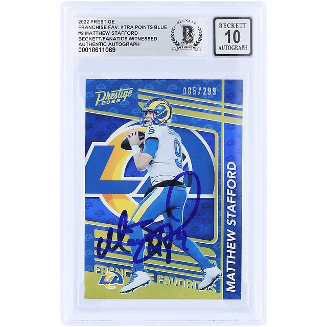 Matthew Stafford Los Angeles Rams Autographed 2022 Panini Prestige Franchise Favorites Xtra Points Blue #FF-2 #/299 Beckett Fanatics Witnessed Authenticated 10 Card