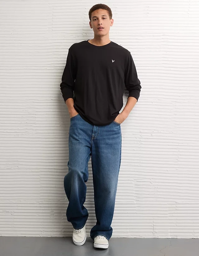AE Long-Sleeve Boxy Sueded Jersey T-Shirt