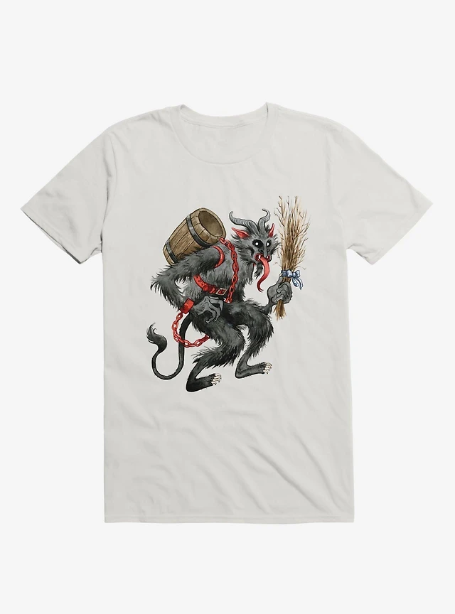 Cute Little Santa And His Spooky Pal Krampus White T-Shirt