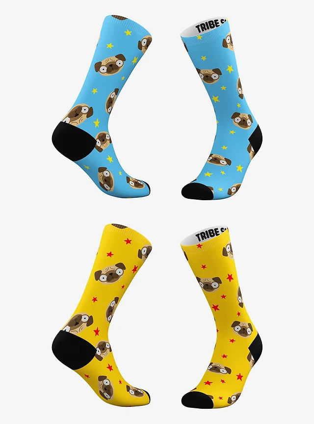 Blue And Yellow Pug Emoji Socks 2 Pair