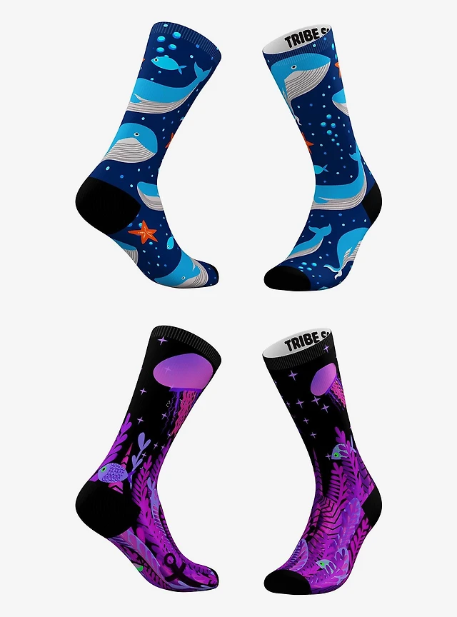Deep Blue Whale And Purple Seascape Socks 2 Pair