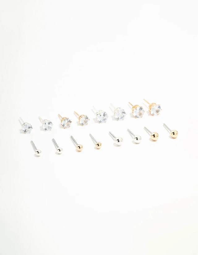 Mixed Metals Classic Stud Earrings 8-Pack