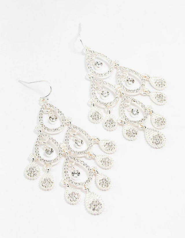 Silver Teardrop Diamante Drop Earrings 3-Pack