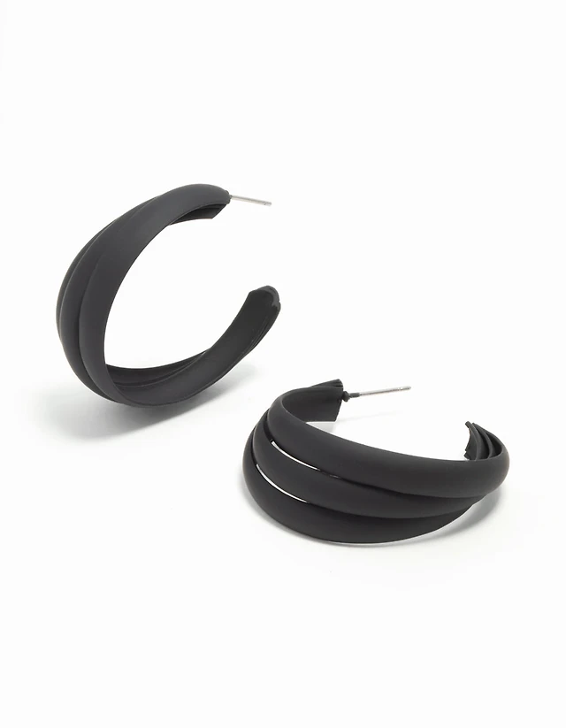 Purple Coated Metal Chunky Teardrop Hoop Earrings