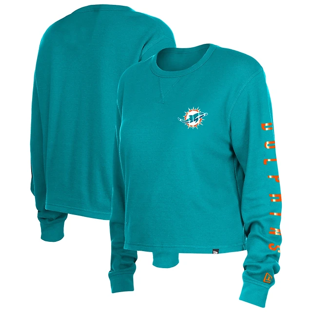 Women's Fanatics Aqua Miami Dolphins Long Sleeve Scoop Neck T-Shirt