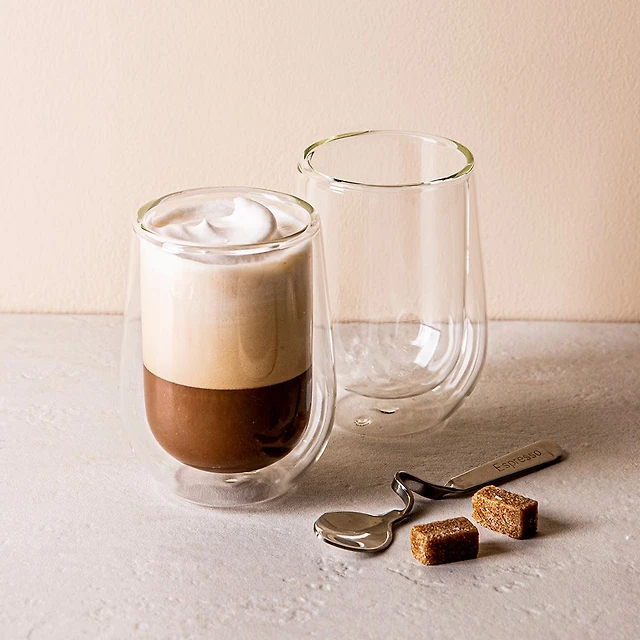 KSP Milano Double Wall Latte Glass with Handle - 480ml, Set of 2
