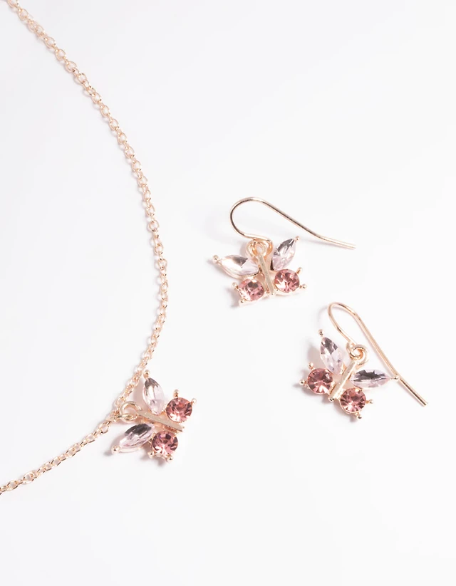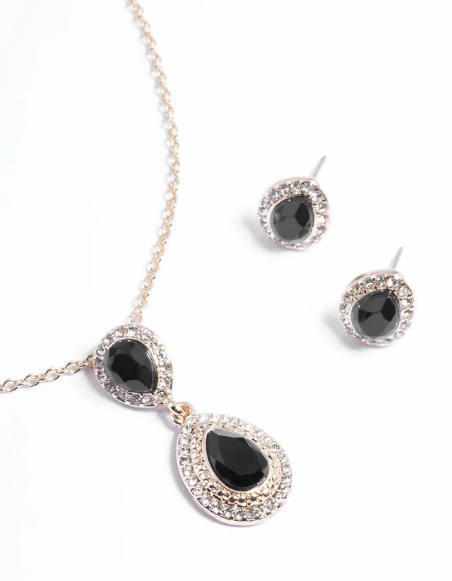 Gold Cubic Zirconia Pear Drop Necklace & Earrings Set
