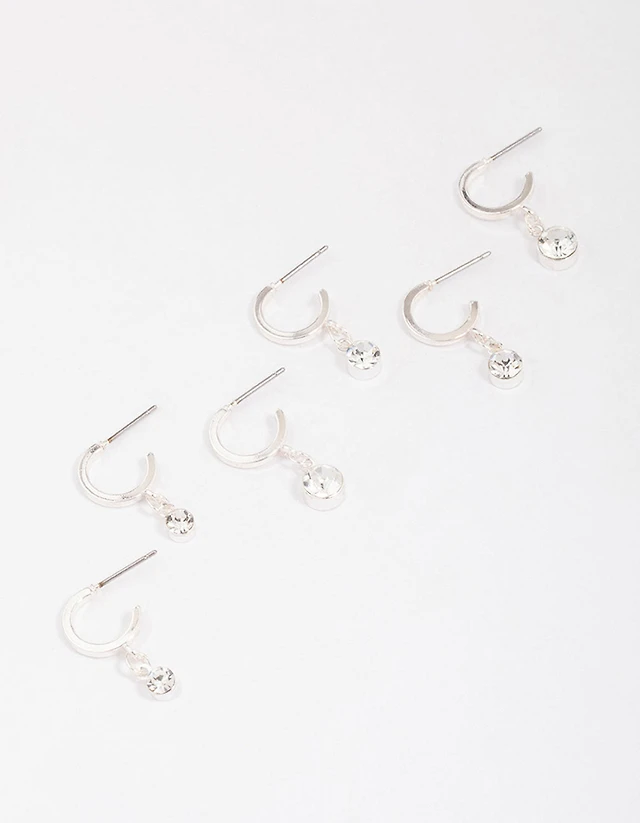 Gold Plated Brass Cubic Zirconia Marquise Earring 3-Pack