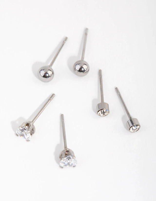 14K Tri-Tone Gold Three-Piece Ball Stud Earrings Set